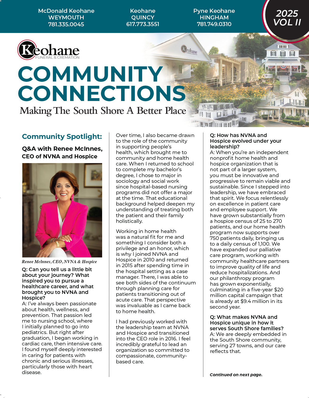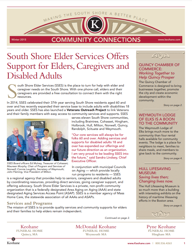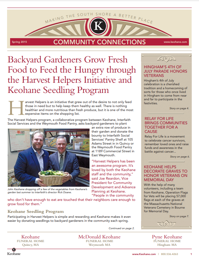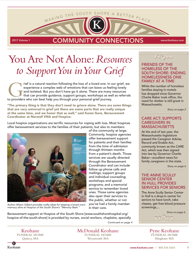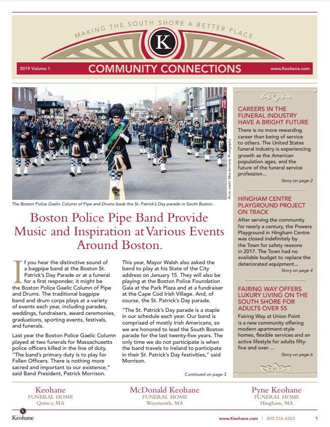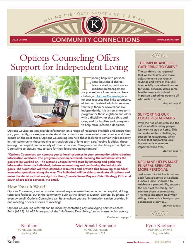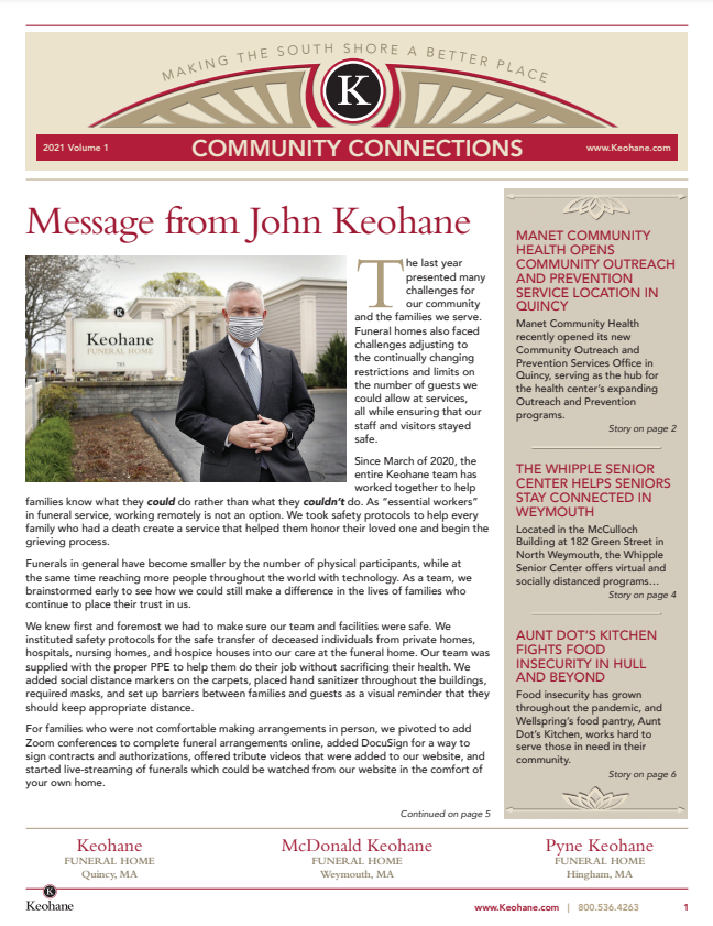 Keohane Funeral & Cremation's Community Connections quarterly newsletter, Volume 1, 2025.