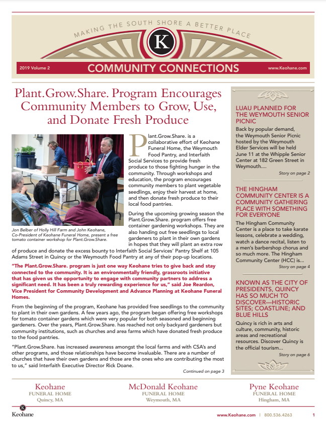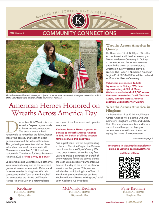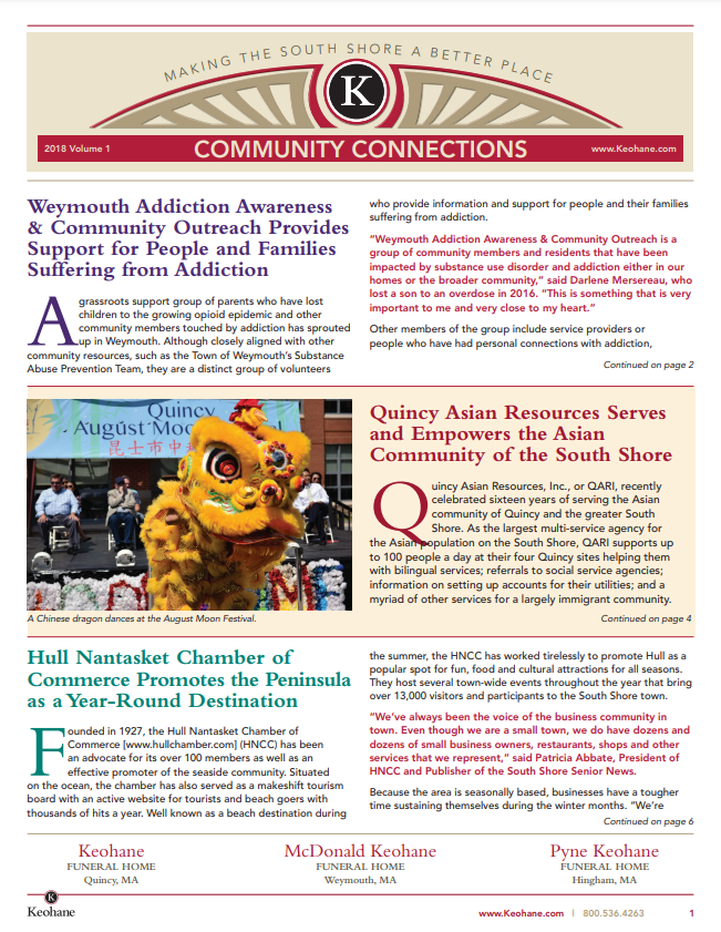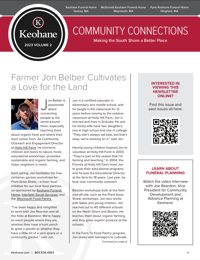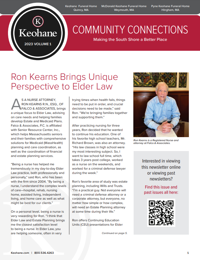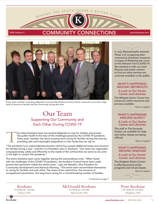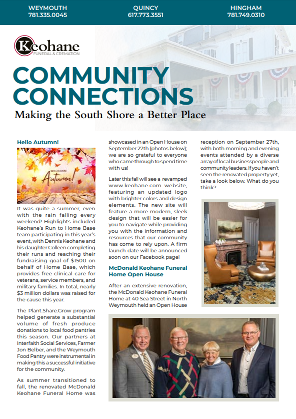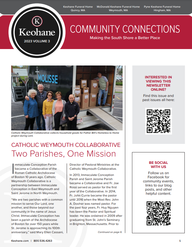 Keohane Funeral & Cremation's "Community Connections" Newsletter, Volume 5, 2024.