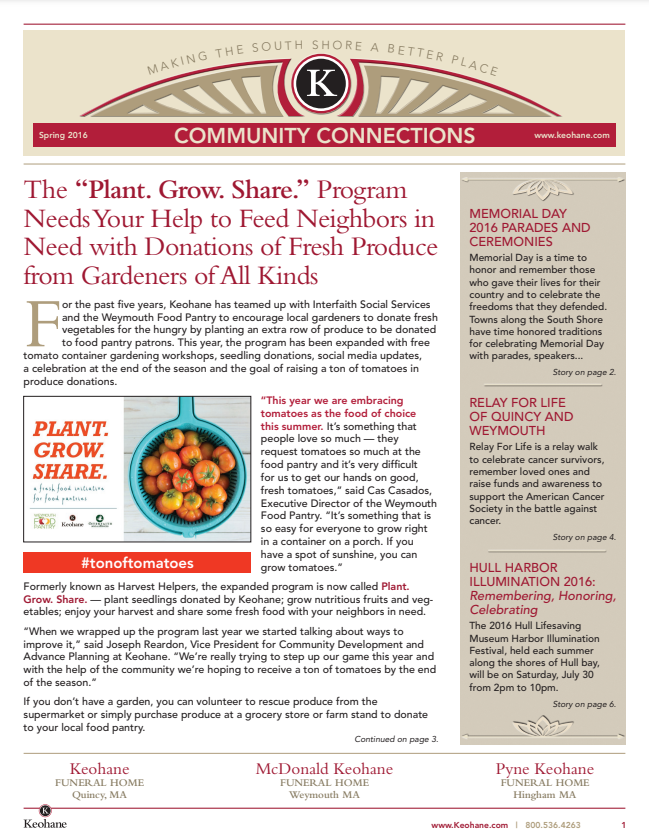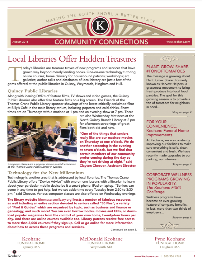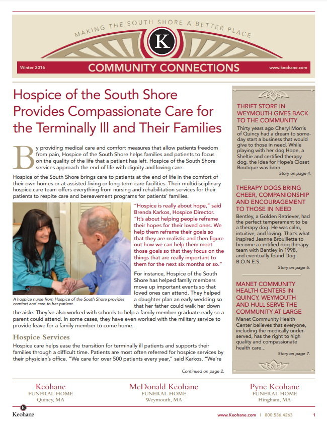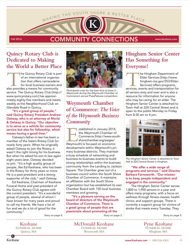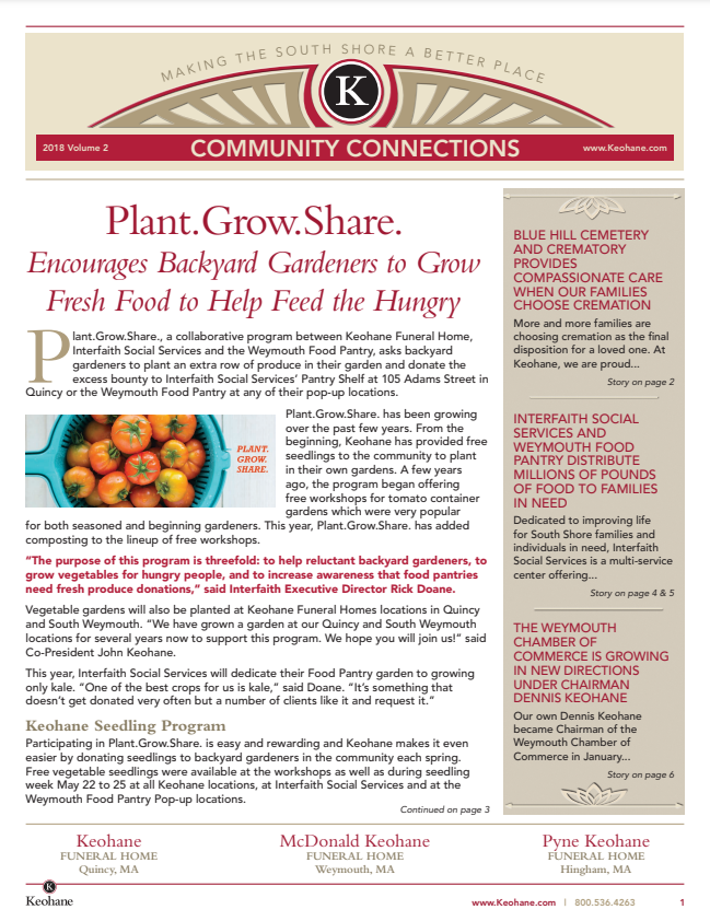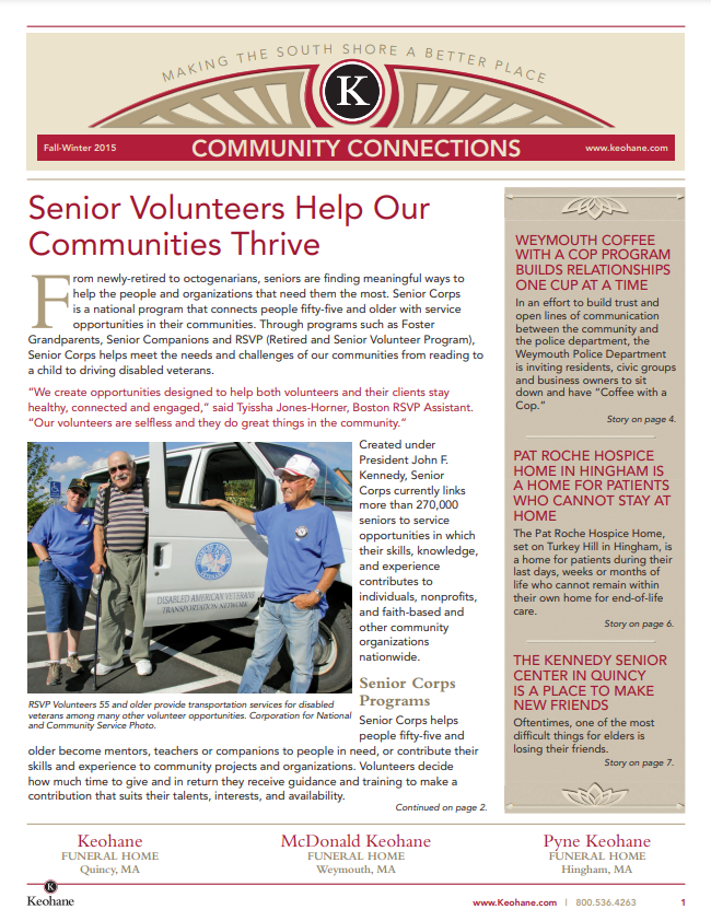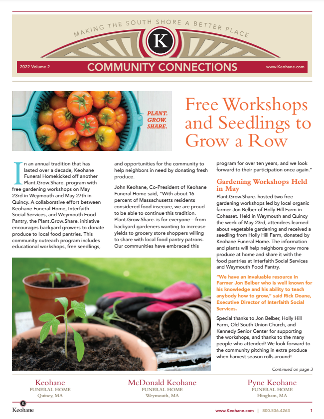 Keohane Funeral & Cremation's "Community Connections" Newsletter, Volume 5, 2024.
